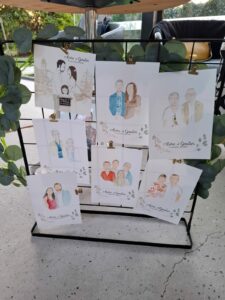 Je réalise les portraits de vos invités en direct pendant votre événement, que ce soit un mariage, un anniversaire, un séminaire, etc.